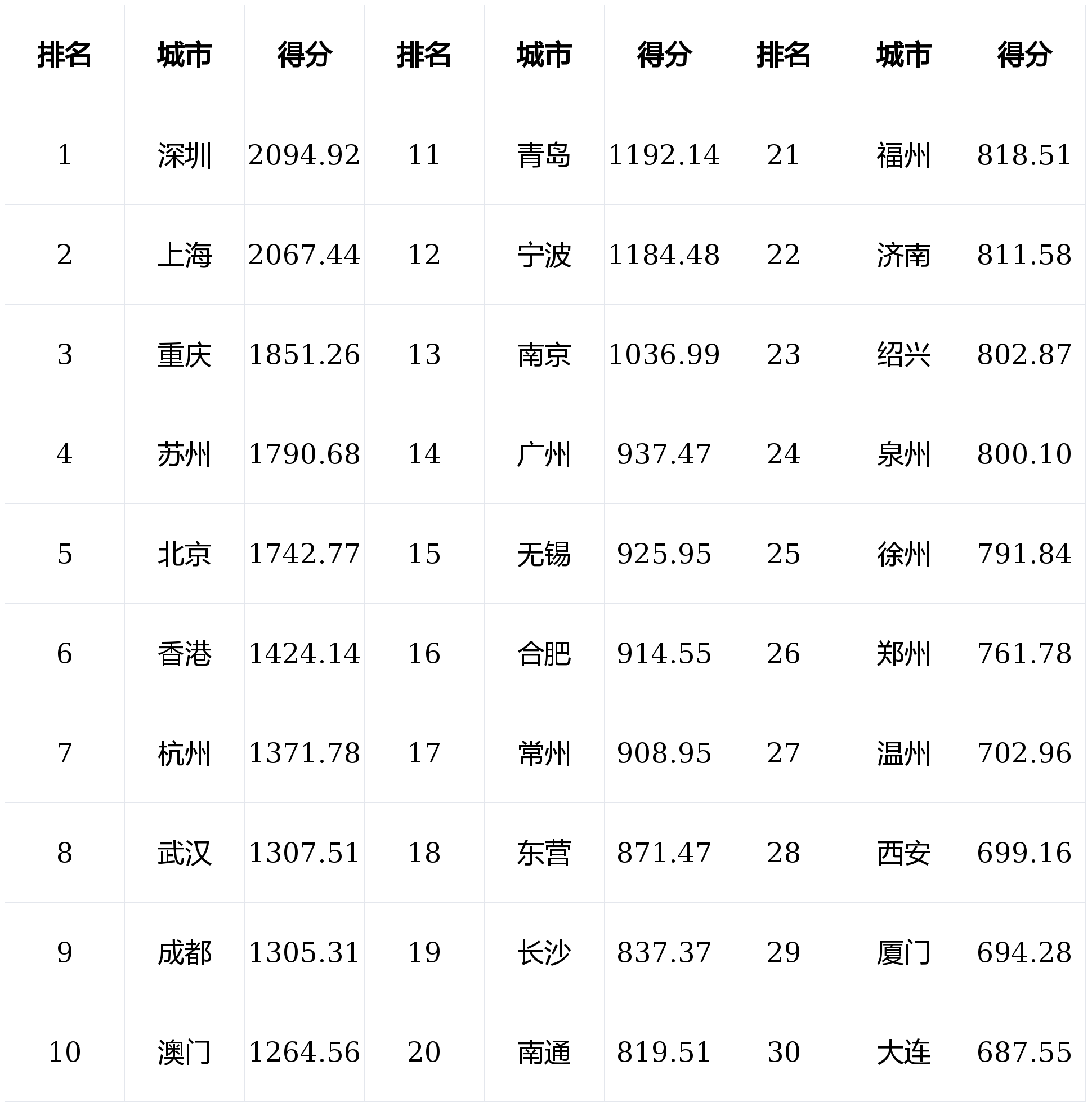 澳门因近年持续鞭策营商优化而跃居第一,超越沉庆,文化合作力强市的特征是:具有丰硕的地区文化资本,由包罗经济合作力、财产合作力、财务金融合作力、贸易商业合作力、根本设备合作力、国际营商合作力、/资本/区位合作力、人力本钱教育合作力、科技合作力和文化抽象合作力正在内的10项一级目标、50项二级目标、217项目标形成。深切全球多个国度取城市开展实地调研,共有12座城市进入该榜单,村域合作力,29项二级目标,